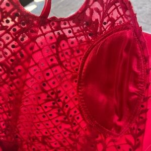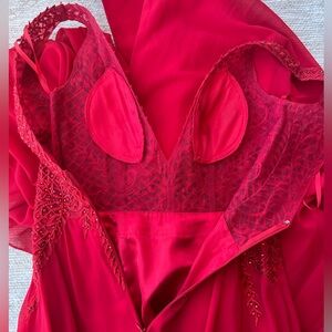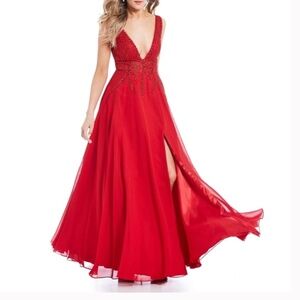 GB Social Deep V-Neck Applique Bodice Red Ballgown