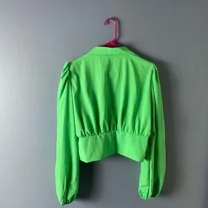 Mundefeis Green Cropped buttoned puff sleeve blouse. Size Large