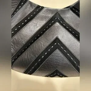 Salvatore Ferragamo Leather/ Suede Chevron Striped Hobo