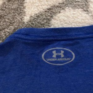 Under Armour Heat Gear Short Sleeve Blue T-shirt - Size Large -loose fit. Good condition with some minor pilling. Length is 28 1/2 inches. To pit is 23 inches. All measurements are approximate. PRICE IS FIRM.