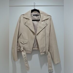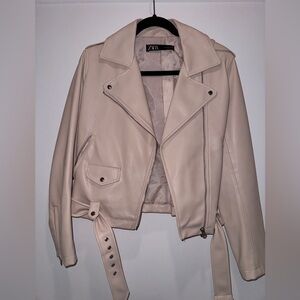 Selling Zara light pink leather jacket. Includes belt