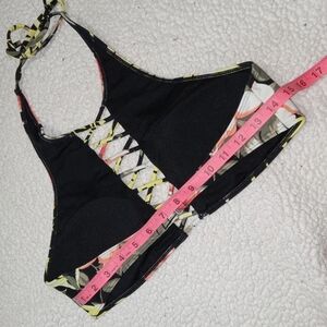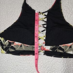 Hollister Floral Crisscross Cutout Halter Bikini Top size Large