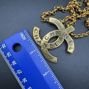 24K gold plated Chanel vintage pendant necklace with the large CC charm