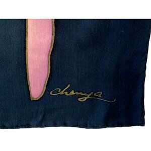 This vintage hand-dyed silk scarf from Japan showcases traditional artistry with vibrant colors and intricate patterns. Signed by the artist, it is a unique and collectible piece.
