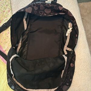 In used, but great shape, black with purple/silver hearts JanSport backpack, washed and ready for use!!! Fully open, no inner pockets, and has one outer zip compartment with 2 pen holder slits and 5” wide open pocket. Great for school, traveling or extra curricular activities.