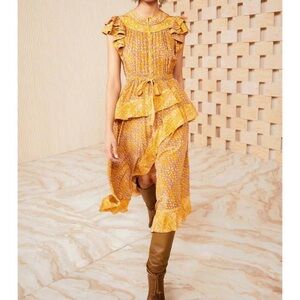 Ulla Johnson Netra Dress in Citrine Size 6 Silk Ruffle Flutter Sleeve Midi Dress