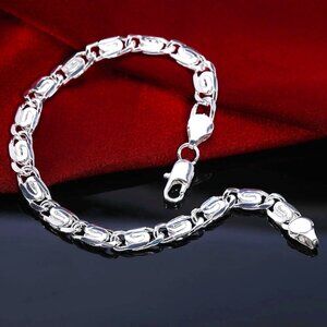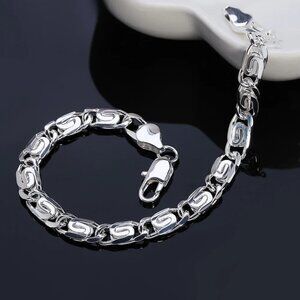 Stunning Flat Byzantine Bracelet 8.00" Long 6mm Wide Stamped 925 Sterling Silver