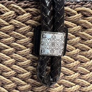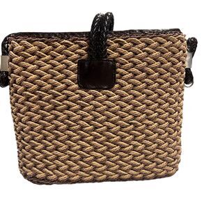 Vintage Brighton Crossbody Tan Cream Jute Brown Woven Leather Crossbody Strap