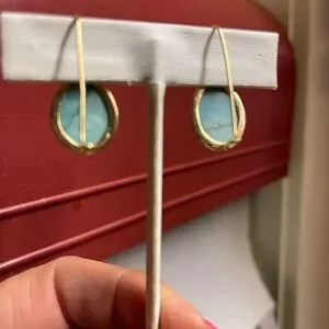 14 karat gold, sleeping beauty, raw turquoise earrings