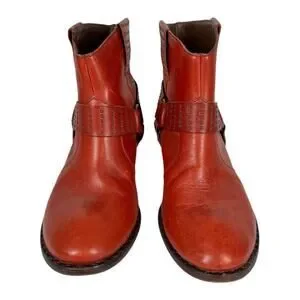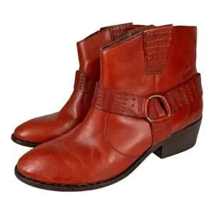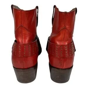 Kork-Ease Katie Red Studded Leather Ankle Booties 8 Western Harness Moto Boho