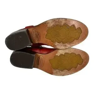 Kork-Ease Katie Red Studded Leather Ankle Booties.. Pull on. Western style with harness detail and stud embellished. Low block heel. Cushioned insole.