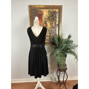 Jessica Howard Dress Women's 8 Black Sleeveless Draping Pleated V-Neck Collarles