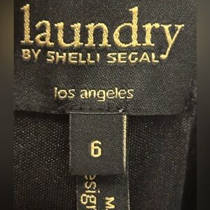 Very nice Laundry dress is both easy to wear and easy to care for! 95% polyester and 5 % spandex make for a comfortable yet put together garment! Fully lined in polyester.