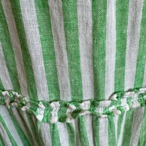 The Caralyn Dress is a simple mini dress and one of the most versatile pieces of the season. With a green-and-white stripe design, it's got a flattering square neckline, ruffle details, and adjustable tie shoulder straps. Rendered in a lined, luxe linen, it’s an effortless staple you’ll reach for again and again.