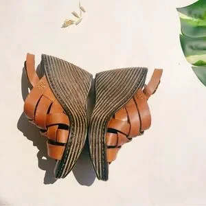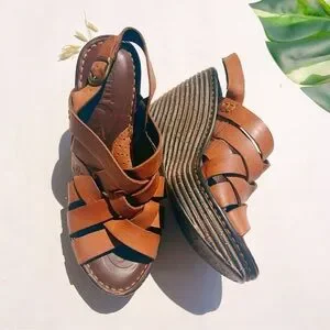 Women’s Born Platform Wedge Brown Leather Sandals 7
