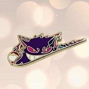 Unite the spooky charm of Gengar with the iconic Nike style in this unique Pokémon Gengar Ghost Nike enamel pin. Featuring Gengar in a dynamic ghostly pose with a stylish Nike twist, this pin captures the essence of eerie energy and athletic flair. Crafted with vibrant colors and intricate details, this pin is perfect for fans who love blending iconic brand aesthetics with their favorite Pokémon.