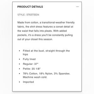WHBM Long Sleeve Poplin Shirt Dress sz 8