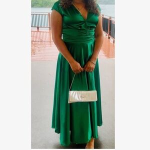 Luxe Satin Plunging Neck party Holiday Midi Dress