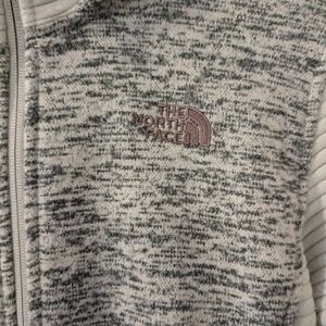 Gray and purple North Face hooded jacket, great condition, on minor wear but overall looks new!!