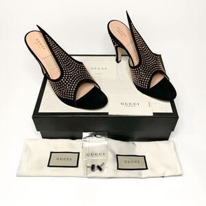 Gucci Fedra Crystal Embellished High Heel Mules EU 39.5 US 9.5 Black Suede Pumps