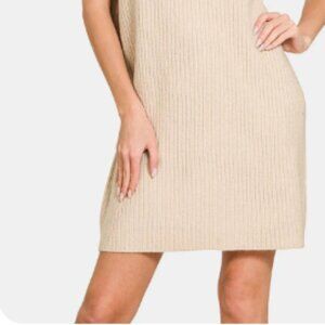 NWOT. THIS SHORT SLEEVE SWEATER DRESS IS A VERSATILE AND COMFORTABLE OPTION FOR YOUR WARDROBE. PERFECT FOR TRANSITIONING SEASONS. COZY AND TEXTURED MATERIAL. 62% ACRYLIC, 35% POLYESTER, 3% SPANDEX.