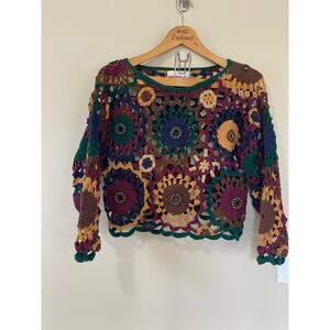 Vintage colorful crocheted cropped long sleeve free size beads Carolina Colours