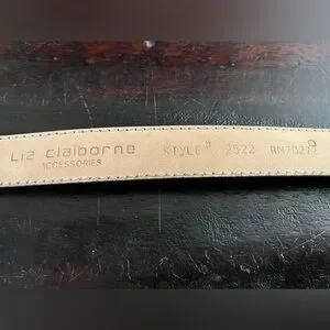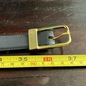 Liz Claiborne gray smooth leather belt with gold tone logo buckle; EUC; smoke-free home