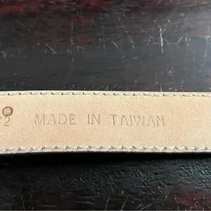 Liz Claiborne gray smooth leather belt with gold tone logo buckle