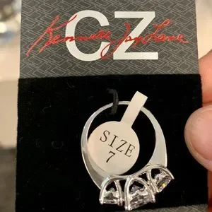 Preloved CZ By Kenneth Jay Lane Round CZ Triple Stone Ring. Clear signs of wear. Priced accordingly.