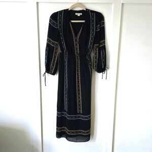 WHISTLES LONDON Black Boho Peasant Midi Dress Flowy Patterned Floral US 2