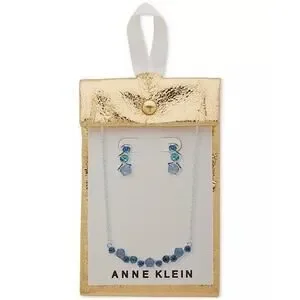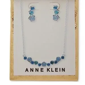 Anne Klein Silver Tone Crystal Necklace Earrings (2pc Set) Trendy Fashion Style