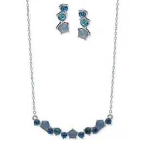 A dazzling ombré effect is created with the colorful crystals of this statement necklace and drop earrings set from Anne Klein.