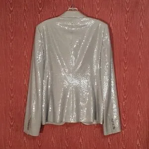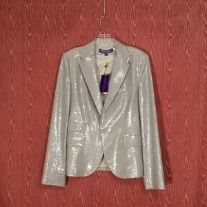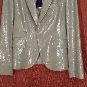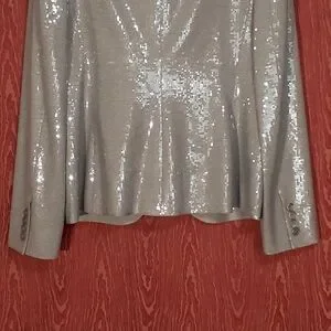 RALPH LAUREN PURPLE LABEL Silver Gray Sequin Blazer I Button Women's Sz 8