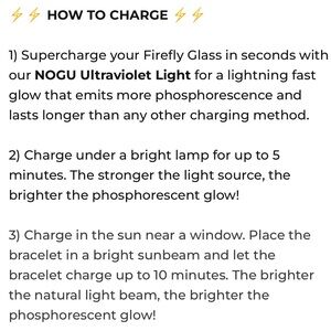 *firefly glass, chargeable glowing bracelet, charging light included, also charges from sunlight