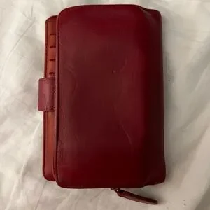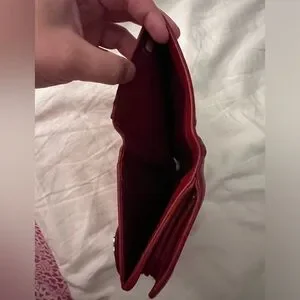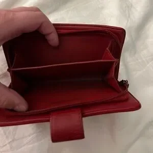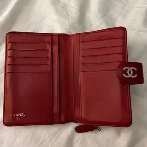 CHANEL Authentic bi-fold wallet camellia leather red silver metal