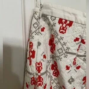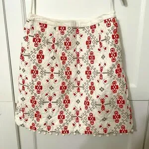 Anthropologie Maeve Blomma Pom Pom Skirt cream and orangey red with side zip