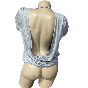 Chaser Heather Grey Double Surplice Top Medium NEW NWT SHORT SLEEVE. No care/fabric label