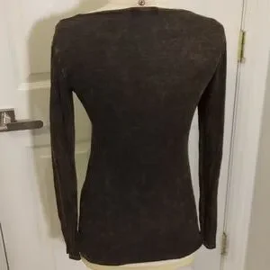 T Party Small Burnout Velvet Embroidered Long Sleeve Boho Peacock Shirt