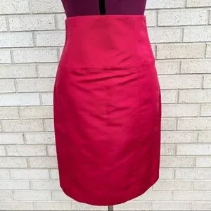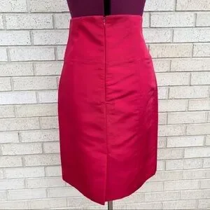 Monique Lihuillier Red 100% Silk High Waist Pencil Skirt Size 8