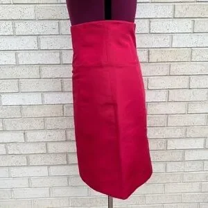 Monique Lihuillier red high waist pencil skirt. 100% silk. Fully lined. Small slit in back for movement. Back hidden zipper. The material is thick and super nice. Perfect skirt for work or an evening out. This skirt is stunning!
