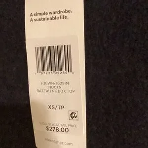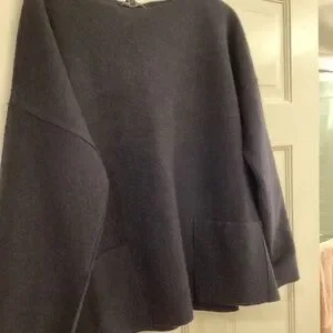 Eileen Fisher bateau neck boxy top, 100% wool in no ( deep navy). Runs large).