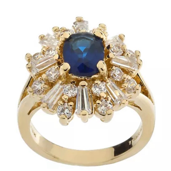 This SOLD-OUT ring has become a collectors item. Simulated sapphires and Swarovski crystal set in gold plate make this piece sparkle like the night sky. Designer signed, size in photos. Beautiful piece for an anniversary or September birthday. Last 3 photos are from the QVC website.