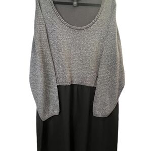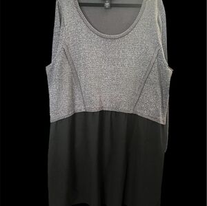 Lane Bryant staple piece dress. Top of the dress is a metallic grey knit sparkle threaded material 93% cotton, 5% polyester 2% metallic and bottom is solid black made with 100% polyester, top has a round neck. Size 22-24W p2p 25" length 42"