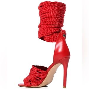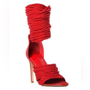 Azalea Wang Red Hot Chili Ankle Wrap Rope High Heel Sandals