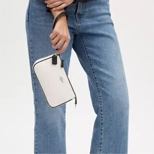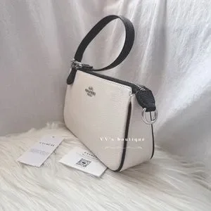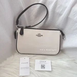 NWT Coach Nolita 19 Pebble Leather Large Wristlet Pochette Bag Chalk Black CP490