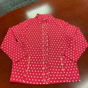 Quacker Factory Pink Polka Dot Snap Up Jacket sz XL EUC
