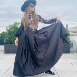 Anthro Full Satin Skater Drama Black Tie Dress Up Maxi Flare Skirt Pockets NWOT