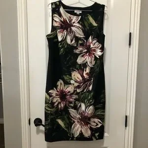 Pit to Pit 21, length 40. Excellent Condition, no rips, stains, tears. Beautiful classy floral print! Well made! Zipper on L side Get yer Calvin Klein Authentic dress today!!