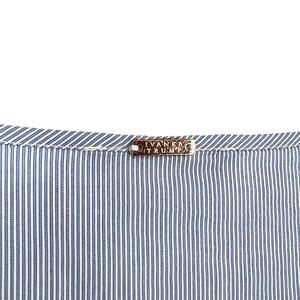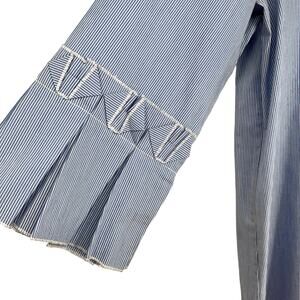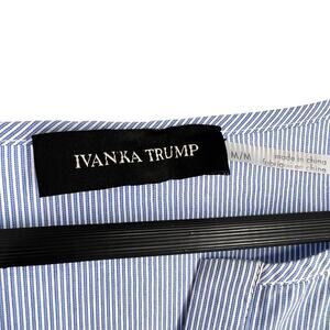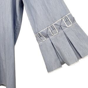 Ivanka Trump Womens Medium Blue White 3/4 Sleeve Pleated Sleeve Blouse Shirt Top
