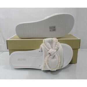 Michael Kors Betsy Distressed Bow Slide Slippers Sandals Optic White Size 8